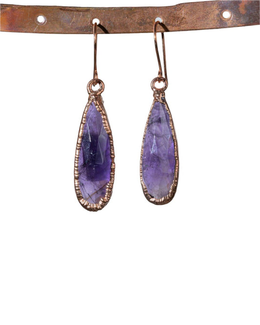 Amethyst Dangle Earrings in Copper