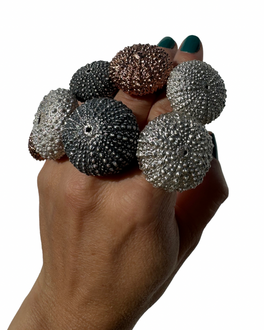 Large Sea Urchin Rings - REAL SHELLS - Silver and Copper