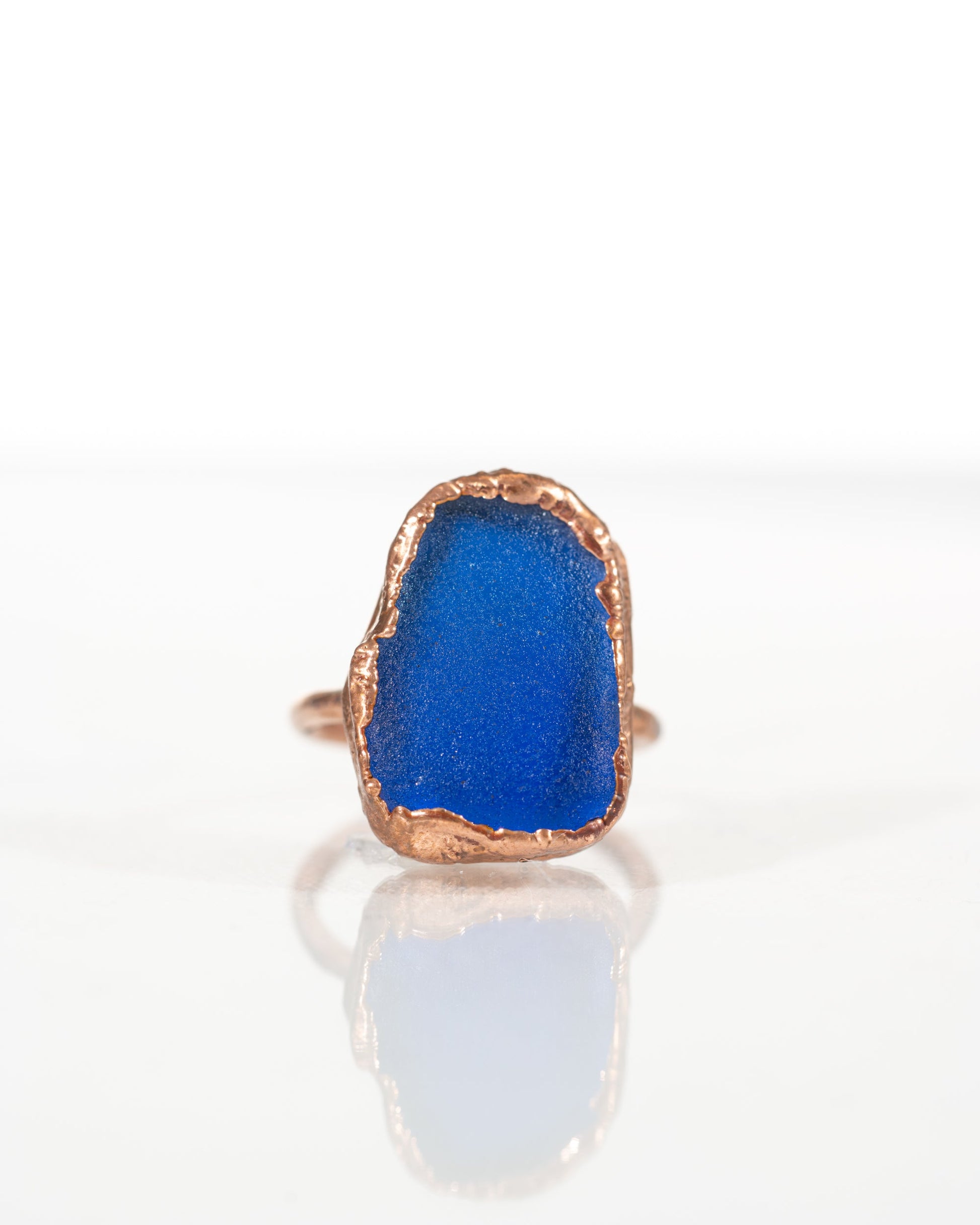 Get ready to make a splash with this Electric Blue Sea Glass Ring! Its vibrant color, set in copper, will have you feeling like you're in the depths of the ocean. And trust us, photos just don't do it justice, it POPS! Available in size 9. (Seriously, you have to see it to believe it!)