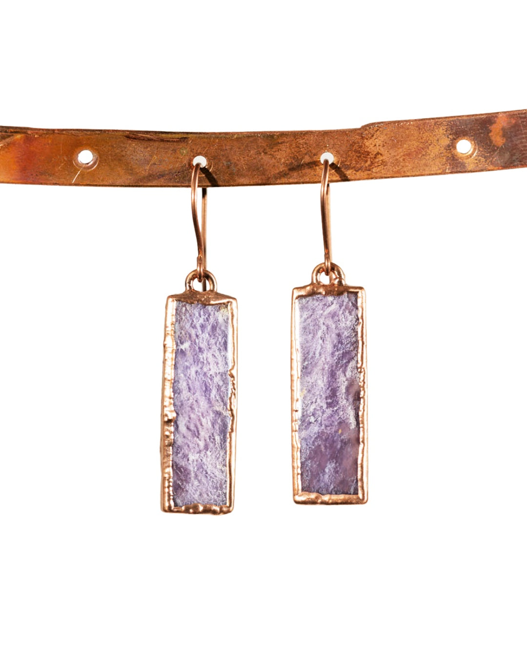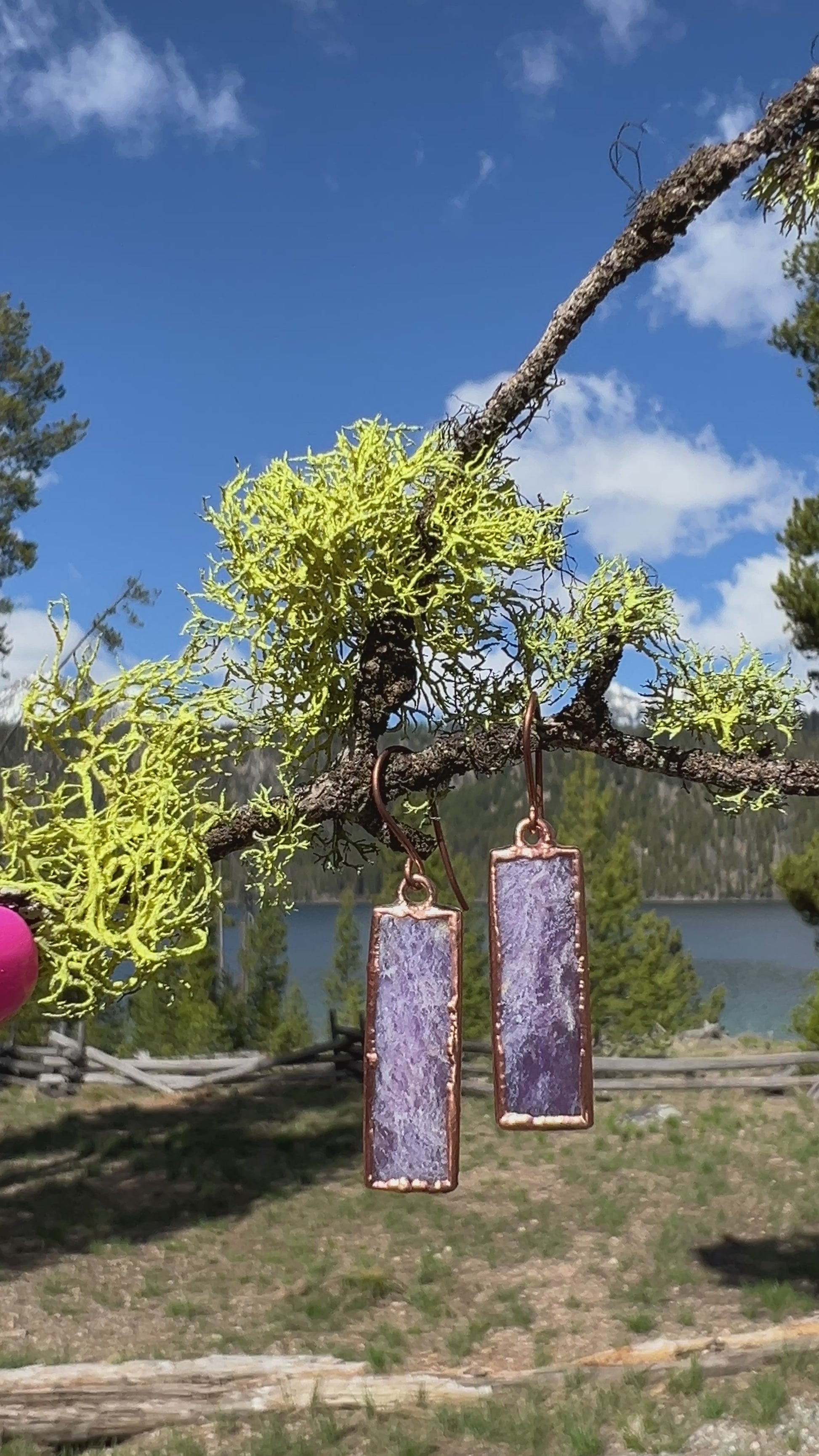 Grape Agate Purple Stone Dangle Earrings in Copper