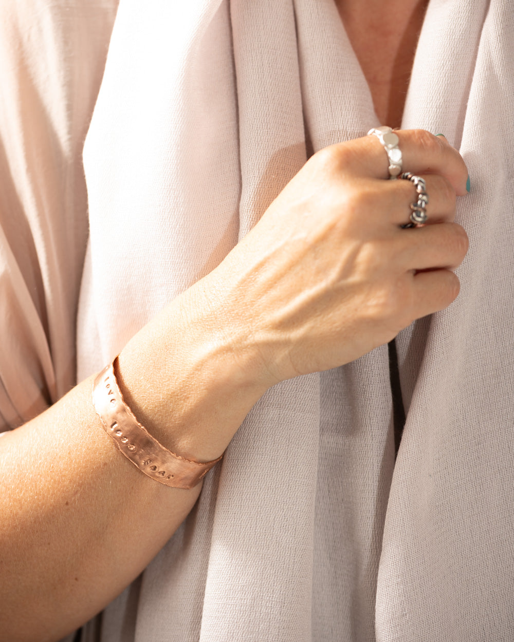 Stay calm and grounded with our Let it Go Silver and Copper Ring. This size 7.5 fidget ring features intertwined sterling silver and copper, serving as a reminder to release your worries and focus on what you can control.