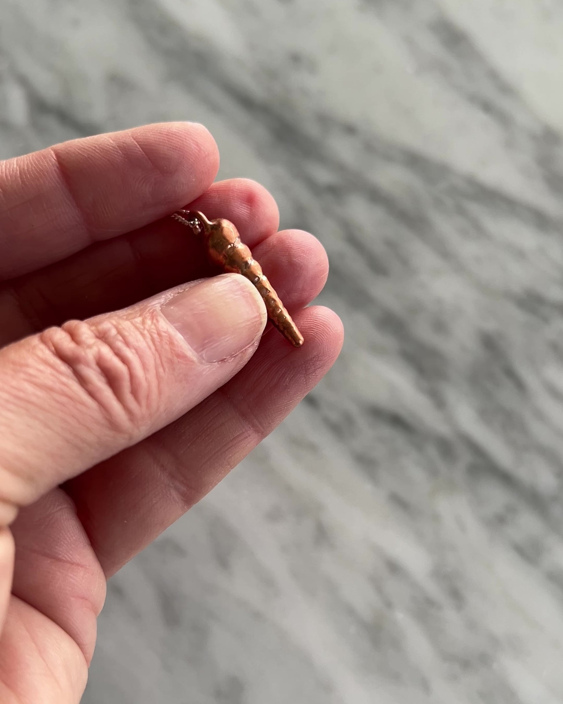 This sweet little spiral shell was coated in pure copper. Chain is sterling silver and is 16 inches long. A separate chain extender can be purchased.