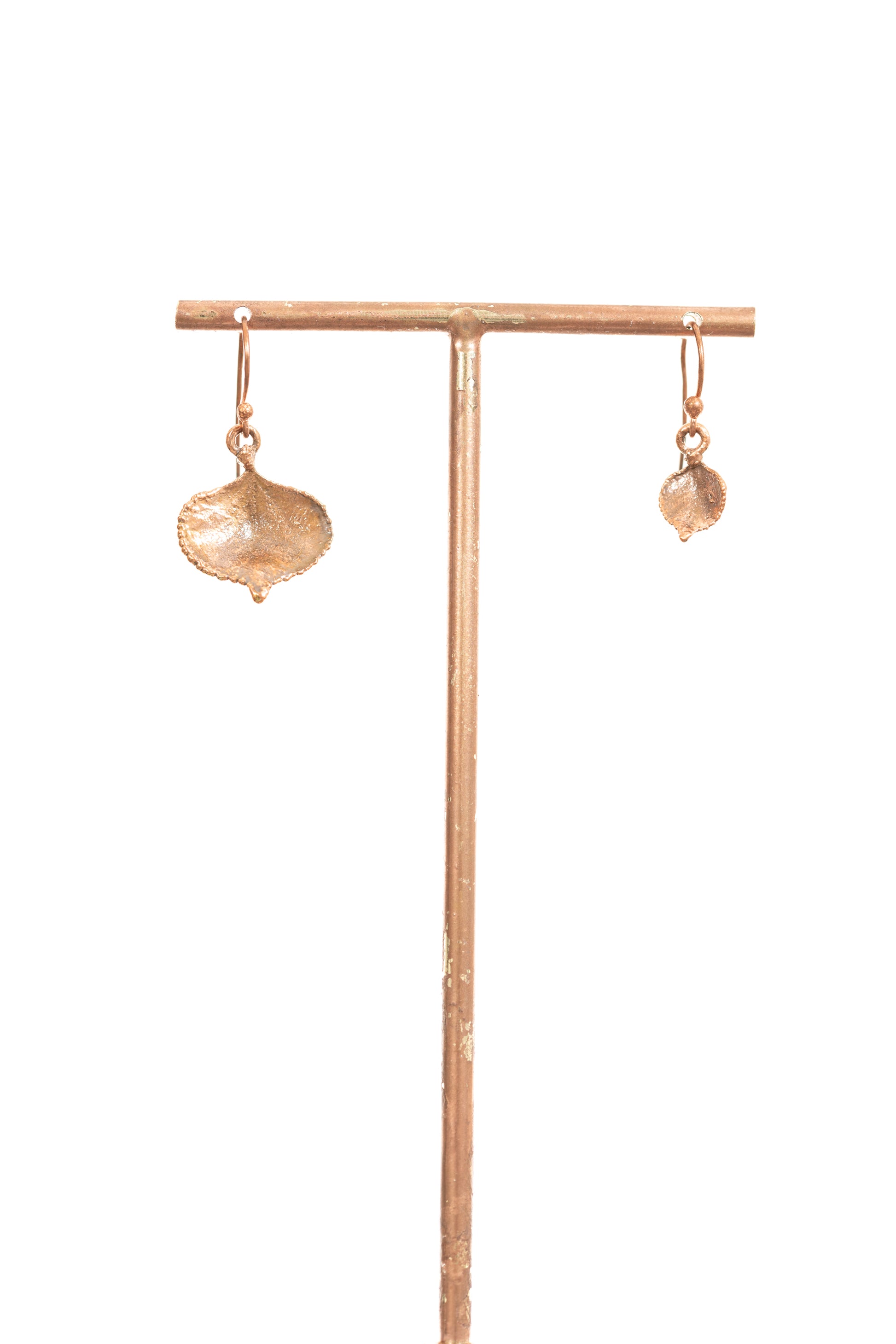 These earrings were made with the tiniest aspen leaves I've ever used. Real leaves were coated in pure copper. They are purposefully not exactly the same size. Copper ear hooks.
