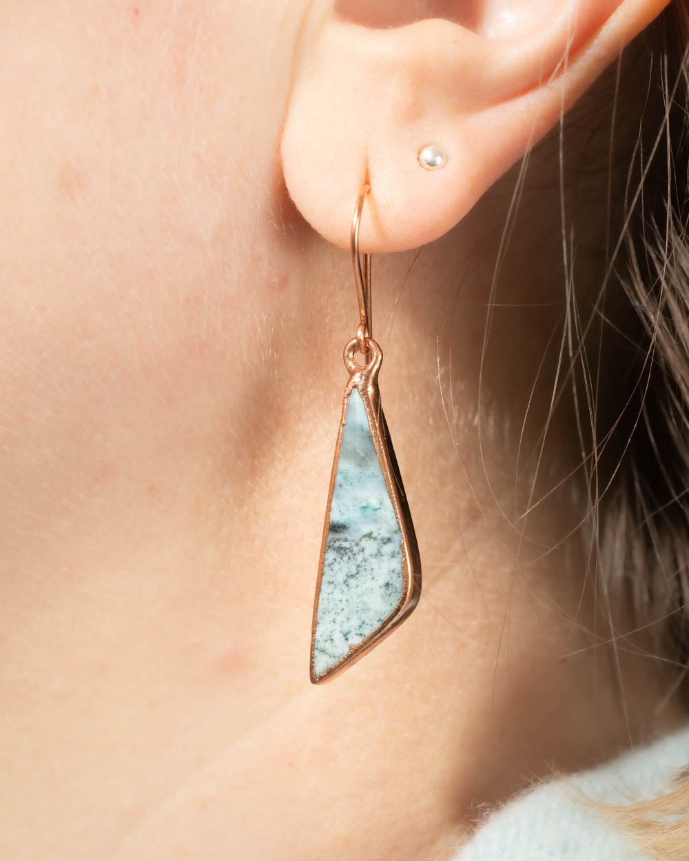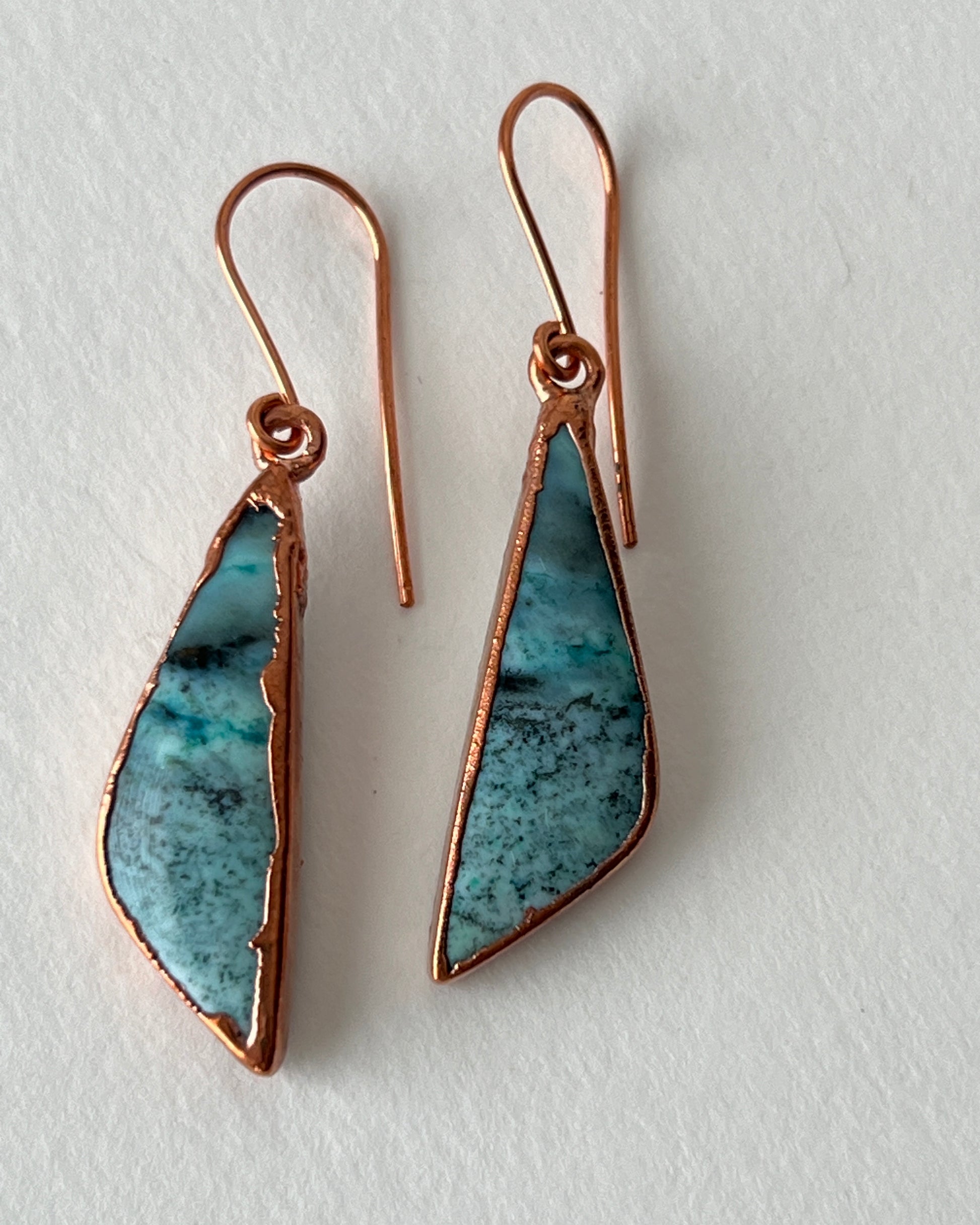 Beautiful turquoise blue opal wood stones set in pure copper.